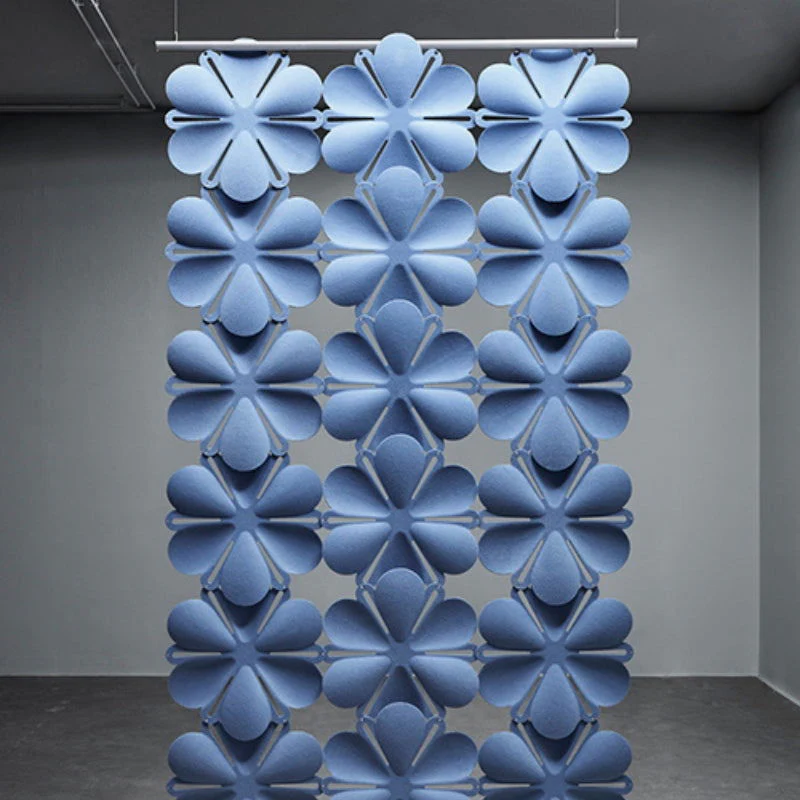 Abstracta Airbloom is a modular hanging screen inspired by the shape of a blooming flower. Available in a wide range of colours and with the option to get creative with layout, this acoustic screen is ideal for adding an artistic flair to any space. The hanging screen not only adds a visual appeal to a room but also offers a practical component with its highly sound-absorbing properties.